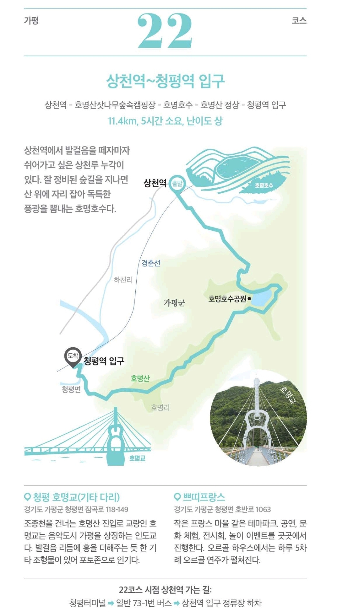 - 들머리: 상천역 호명호수 방향 / 날머리: 청평역 뒤쪽 주차장