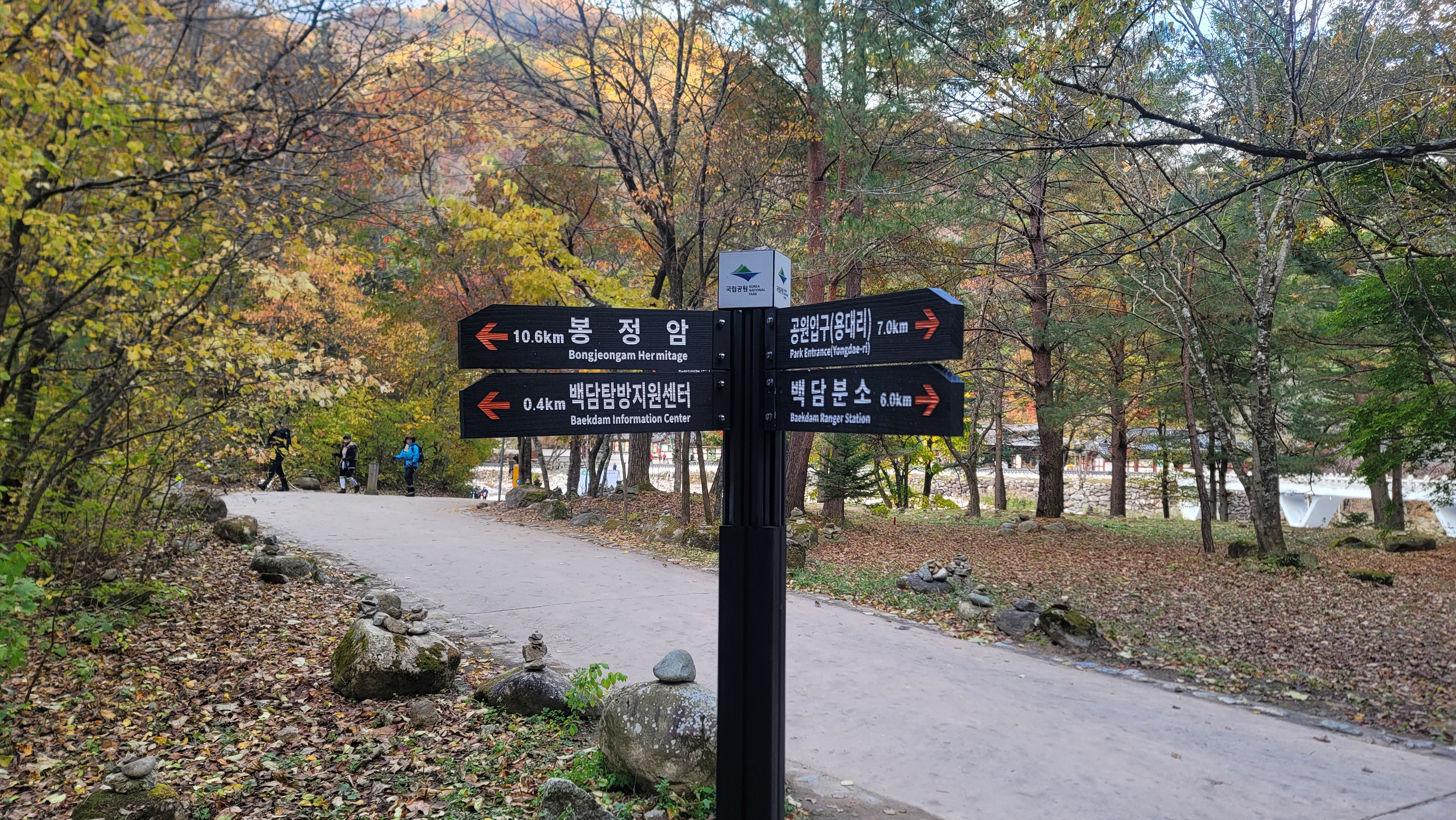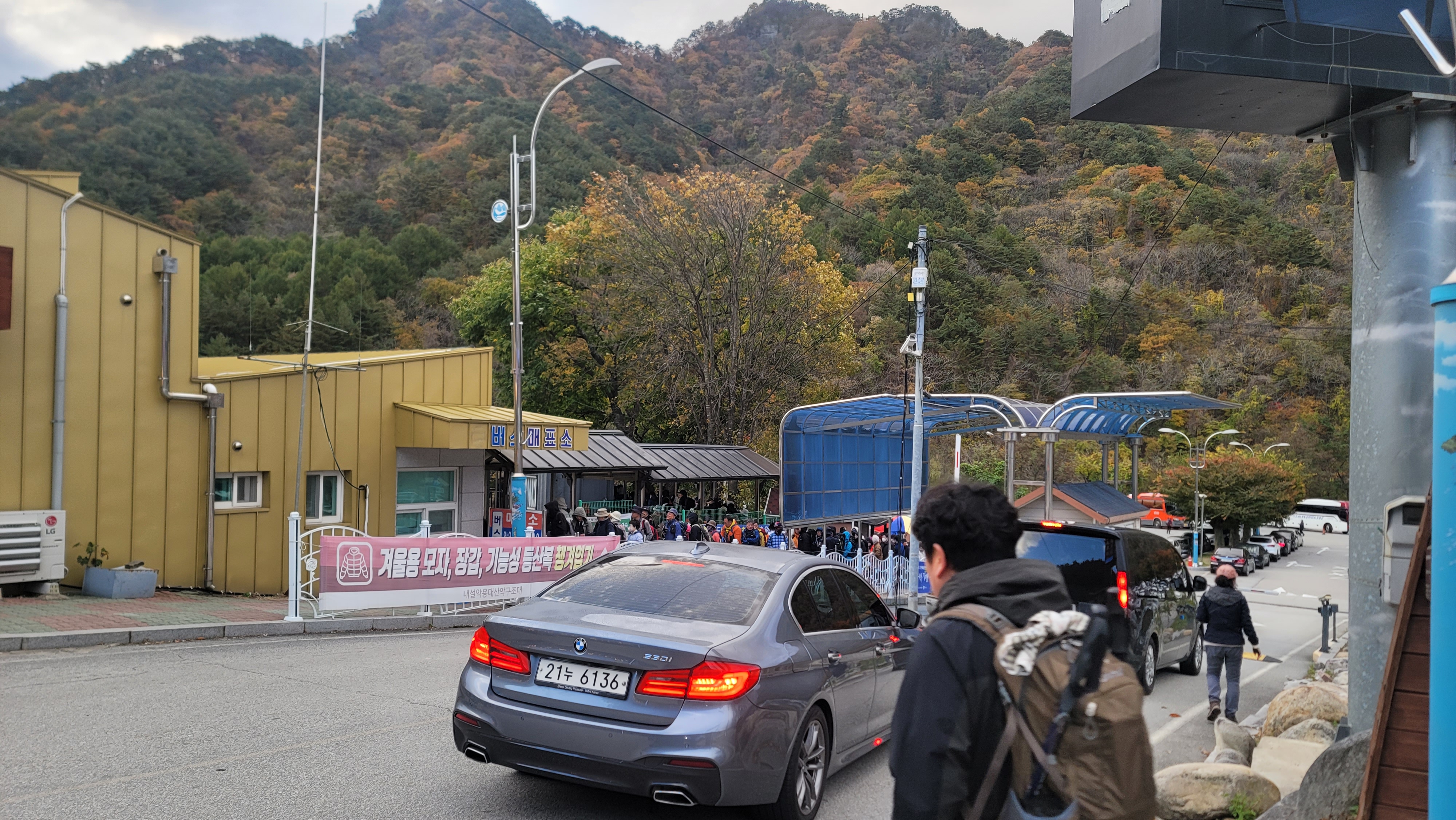 새벽 4시 30분에 서울에서 출발해 중간 휴게소에서 아침 국밥 한그릇 든든히 먹고 주차장에 도착하니 6시 45분이다. 버스 운행이 7시 부터여서 여유잡고 왔는데 단풍시즌이라는 것을 간과했다.