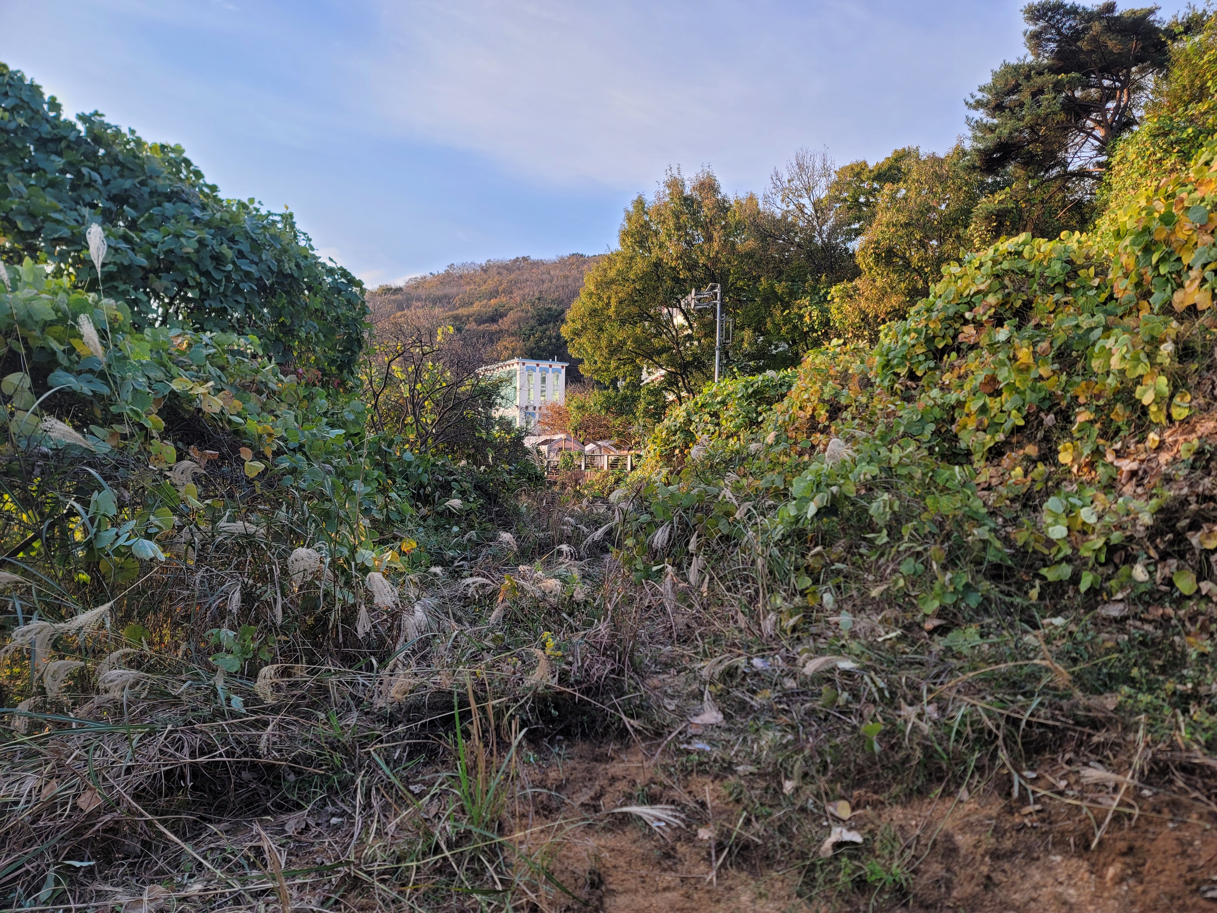 사장님과 정리할 범위등을 논의하고 아쉽지만 전망을 위해 배나무, 매실나무 (물론 칡이 다 덮고 있는) 들을 뽑아 버리기로 한다. 약 6시간의 작업 후 전망을 확보하고 넓다란 밭이 생겼다.