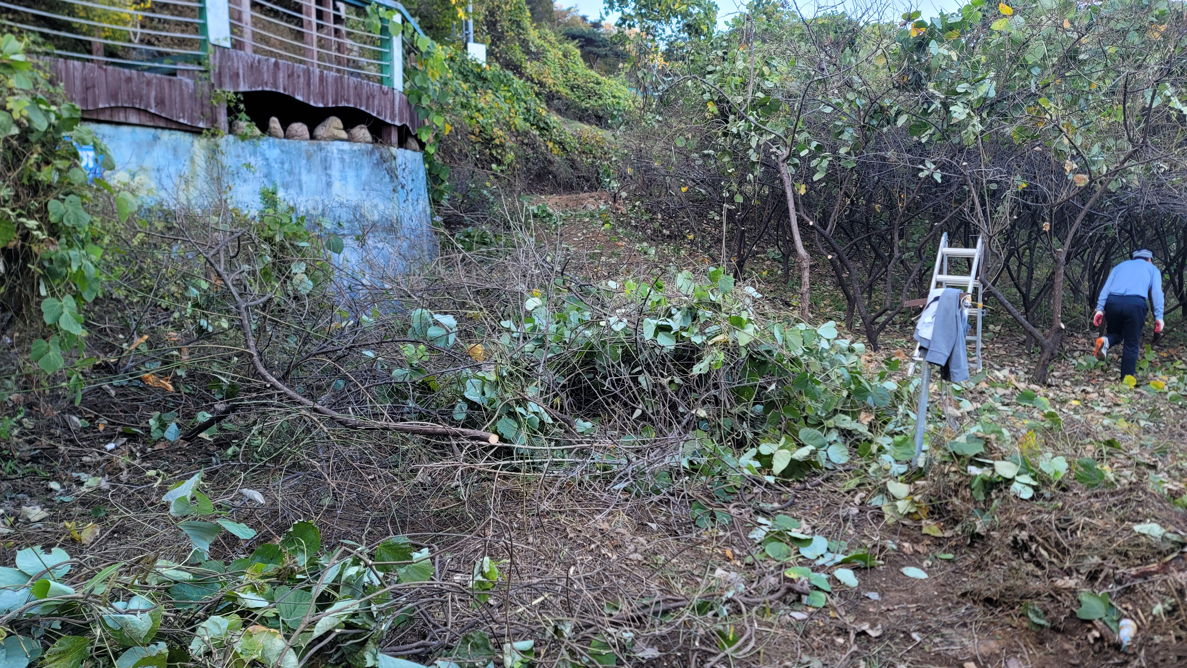3. 매실나무를 덮고 있는 칡넝쿨 제거 및 바닭의 칡뿌리 뇌두 제거(이게 제일 힘들듯...)