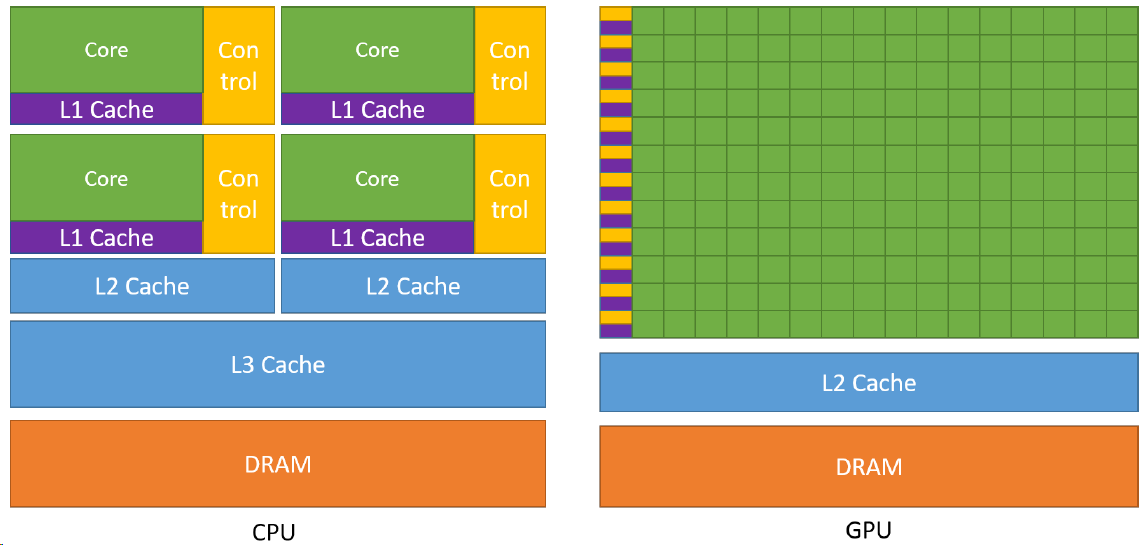 GPU를 사용하면 왜 빠르냐는 아주 무식한 질문을 한적이 있었다. 그에 대한 답변은 너무 간단했다. "CORE 가 많어" Core가 많으니 당연히 많은 연산을 할 수 있을것이고 좋은 성능을 나타낼 수 있다는 이야기였다. 한동안 누군가가 GPU를 왜 쓰냐는 질문을 하면 나도 똑같이 대답하다보니 무언가 좀더 자세히 알아보고 싶은 생각이 들었다. CPU는 스레드(thread)라고 하는 순차적인 명령어(a sequence of operations)들을 빠르게 처리하며 동시에 수~수십개의 스레드를 병렬(parallel)처리하도록 설계되어 있으나 GPU는 동시에 수천~수만개의 스레드를 병렬로 실행하는 목적으로 설계되었다. 그러나 GPU에서의 스레드는 명령어의 집합이 아니라 주로 병렬 계산(parallel compu..